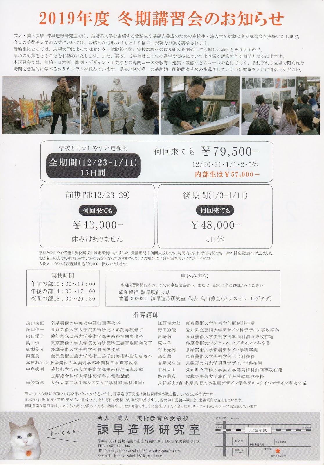 今年も芸大・美大受験 諫早造形研究室は2020年 直前講習会を行ないます。